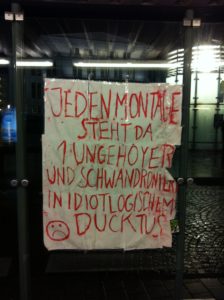 Es gibt aber auch Unterschiede zwischen den Bewegungen. Besonders auffällig beim Lesen der Berichte von damals ist der starke Gegenprotest. Nicht nur waren die Gegendemonstrierenden zahlenmäßig weit überlegen, sogar die Universität sagte Lehrveranstaltungen ab, um Studierenden die Teilnahme am Gegenprotest zu ermöglichen. Auch im Vorfeld des 7. November veröffentlichten die Leipziger Wissenschaftseinrichtungen ein Statement, in dem sie sich gegen Fake News und Verschwörungsmythen aussprachen. „Viele Leute, die berechtigte Kritik an den Maßnahmen haben, wie etwa Gewerbetreibende in der Innenstadt, haben sich gegen Querdenken positioniert, zum Beispiel mit Bannern in ihren Geschäften“, sagt Vogt. Die Zahlenverhältnisse sahen aber ganz anders aus als 2015: Am 7. November standen zehntausenden Coronaleugner*innen nur einige hundert Gegendemonstrierende gegenüber, was aber natürlich auch daran liegt, dass es zu Zeiten von Legida keine Pandemie gab.