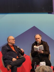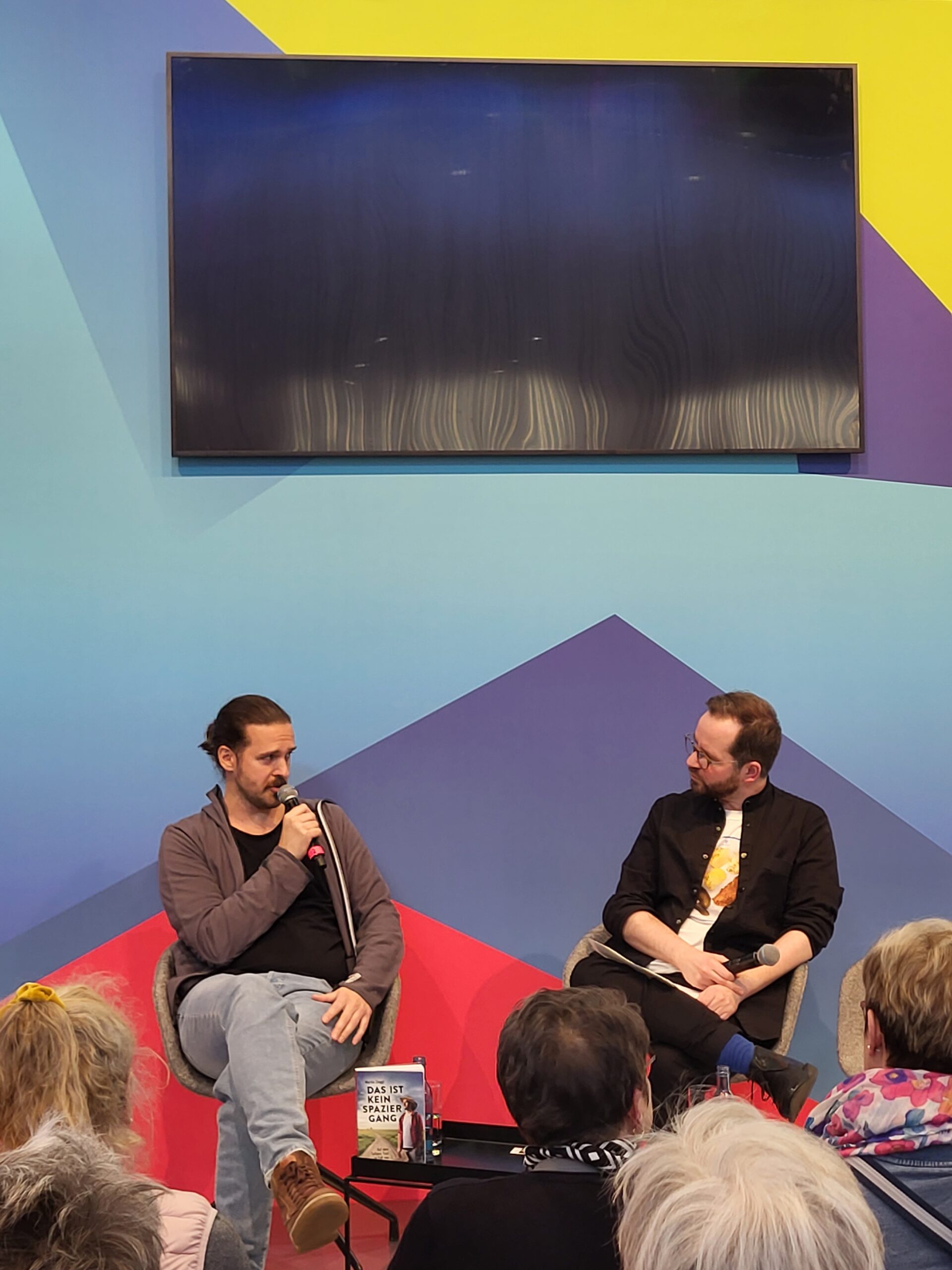 Im Gespräch mit Stephan Ozsváth sorgte Dinev bei der Eröffnung der Donaubühne schon zu Beginn für Gelächter, als er über die Arbeit an dem Buch sprach. „Irgendwann haben mir meine Stipendiengeber nicht mehr geglaubt, dass ich an dem Buch arbeite“, sagt er. 13 Jahre habe er an seinem Roman geschrieben, am Ende entstand ein fast 1.200-seitiges, etwa 800 Gramm schweres Buch. Den Entstehungsprozess vergleicht er mit einer Pilgerreise: „Je länger die Reise geht, desto mehr fällt von einem ab. Es war wie ein Reinigungsprozess für mich selbst.“ Die Arbeit hat sich gelohnt: 2025 wurde „Zeit der Mutigen“ mit dem Österreichischen Buchpreis ausgezeichnet.